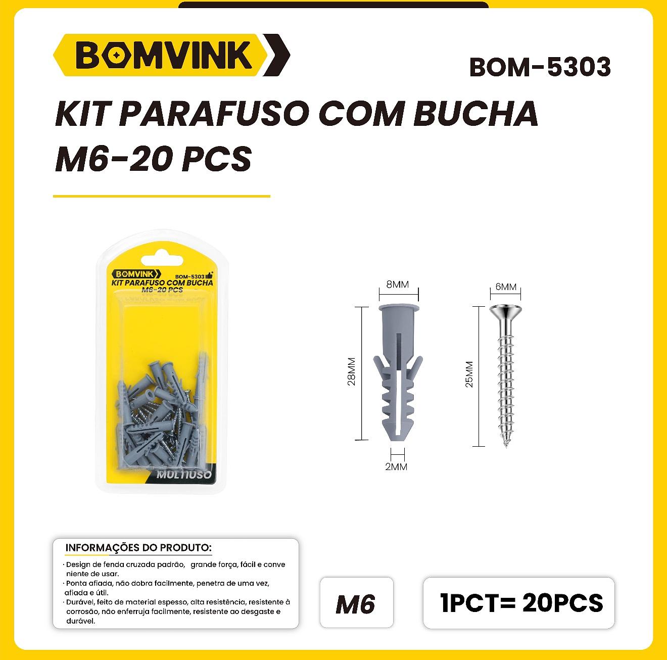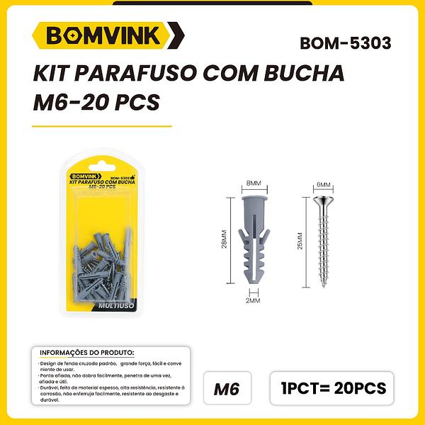 KIT PARAFUSO COM BUCHA M6-20 PCS
