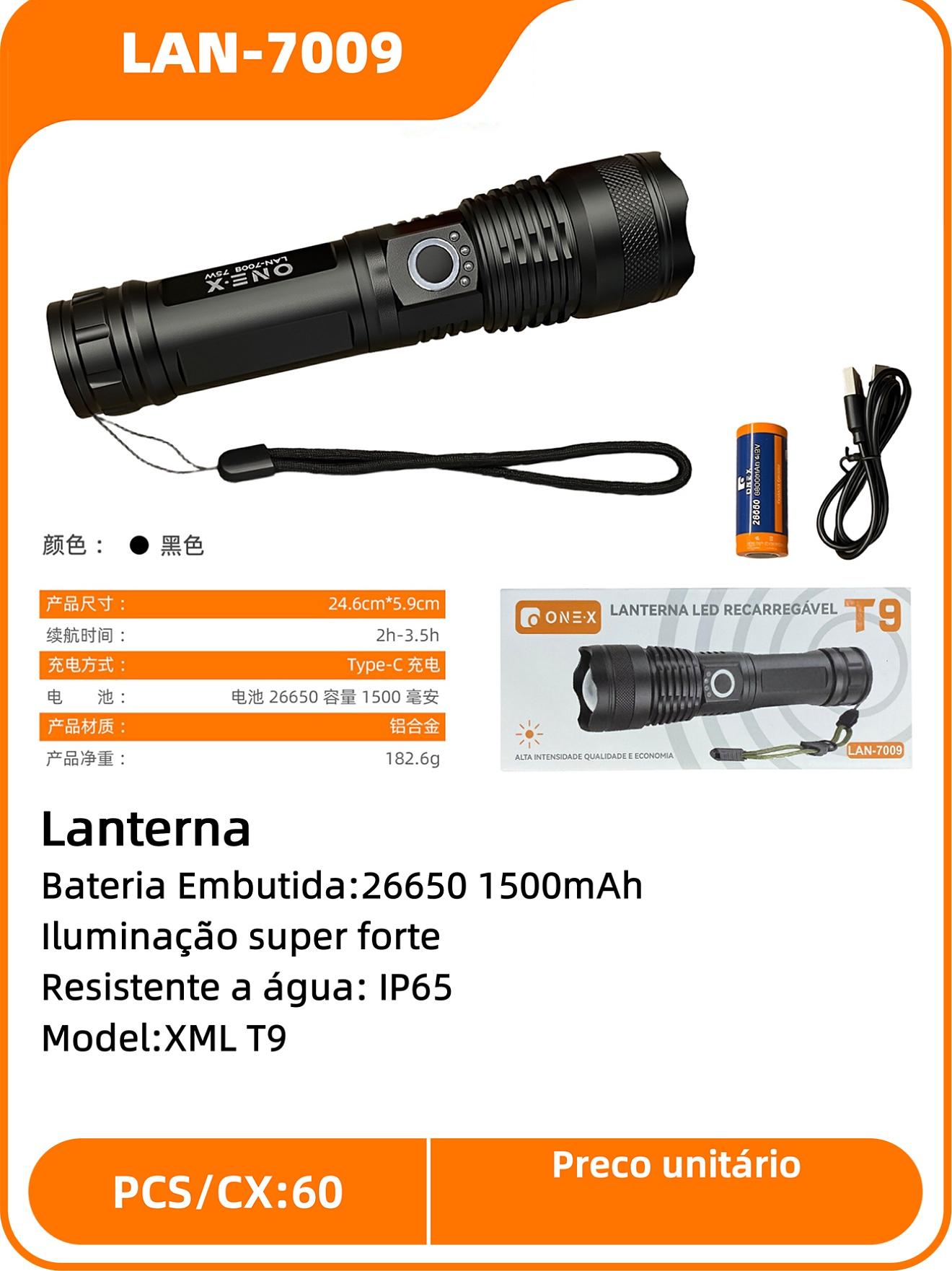 Lanterna Super Potente T9 Tática Camping Lâmpada De Iluminação De Longa Altitude