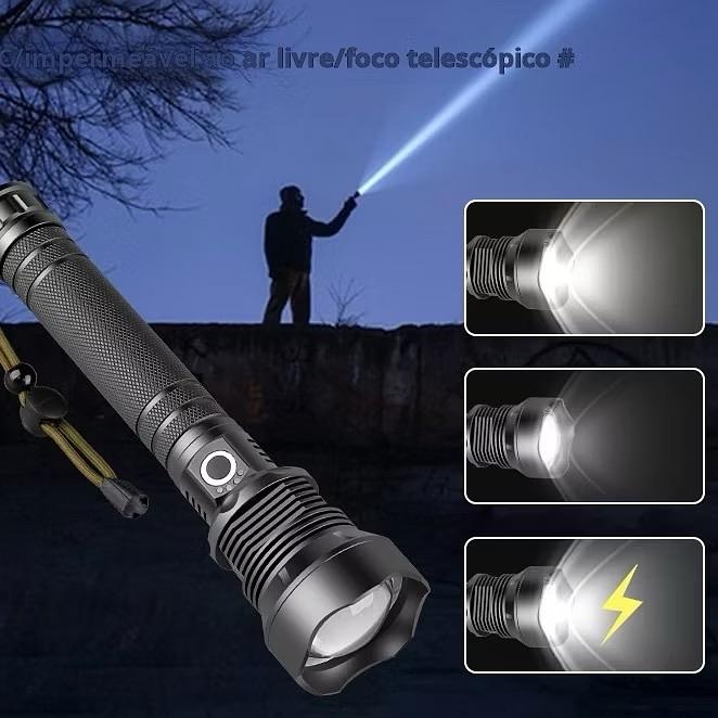 Lanterna tática led T9 P90 Grande forte recarregável zoom bateria