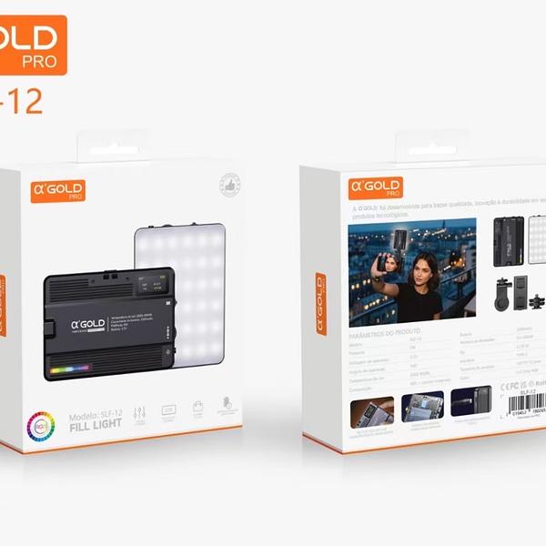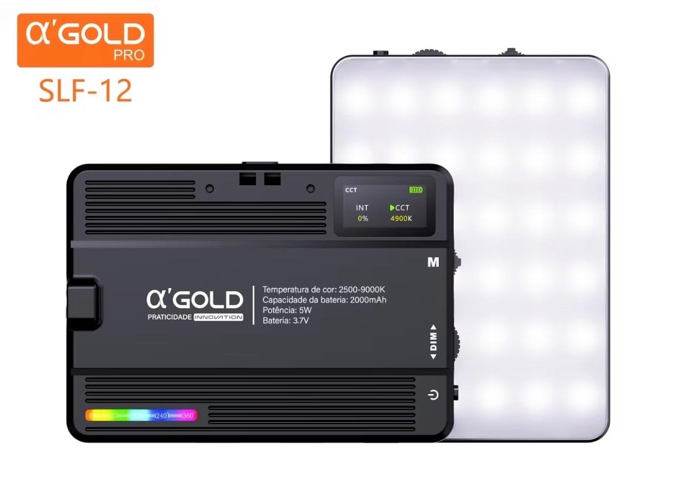Luz de LED RGB α GOLD PRO SLF-12 – Iluminação Portátil p/ Foto, Vídeo e Maquiagem