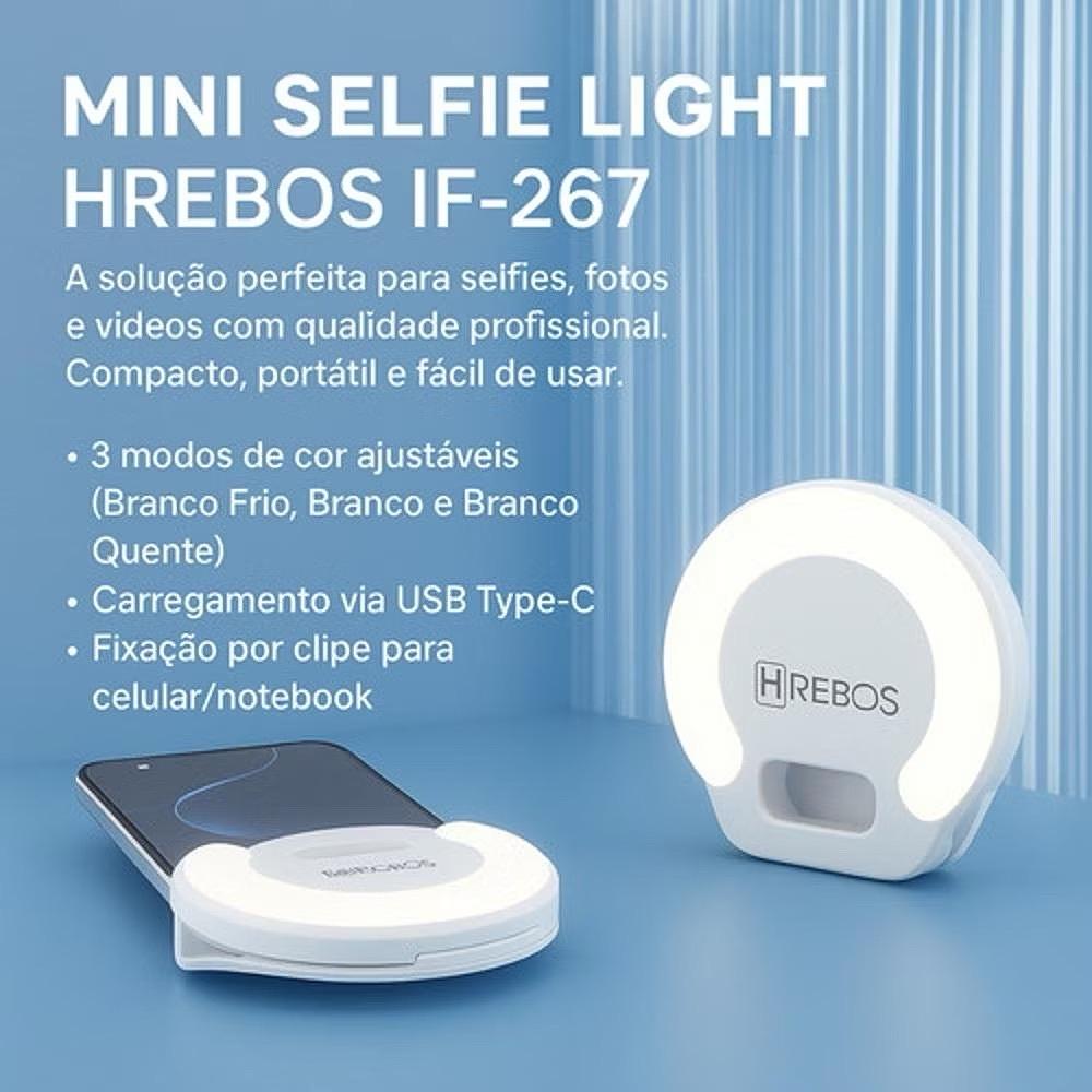 Luz De Selfie Portátil Com Clipe E 3 Modos De Iluminação Branco—KAIDI
