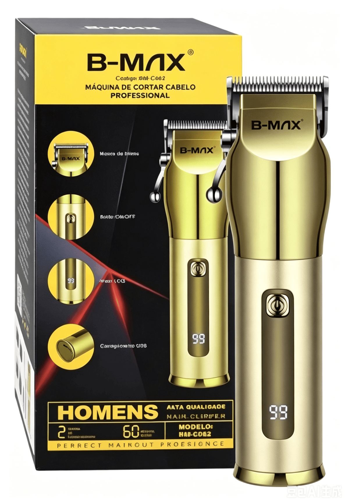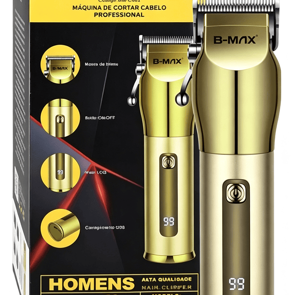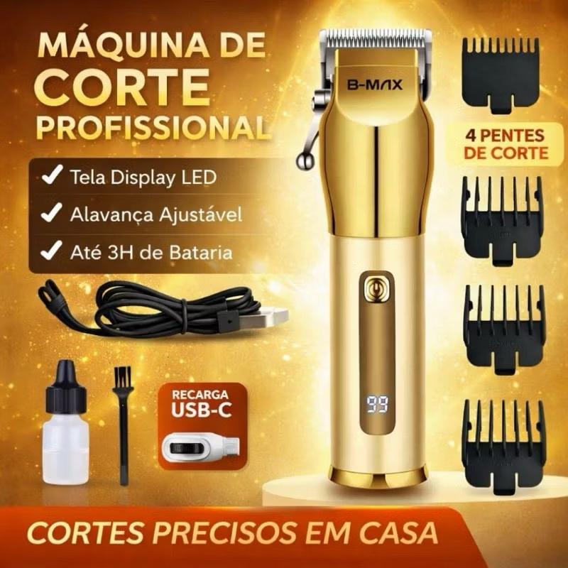 Máquina Cortar Cabelo Profissional Sem Fio Dourada USB LCD Barba Potente Bivolt Silenciosa Alta Qualidade