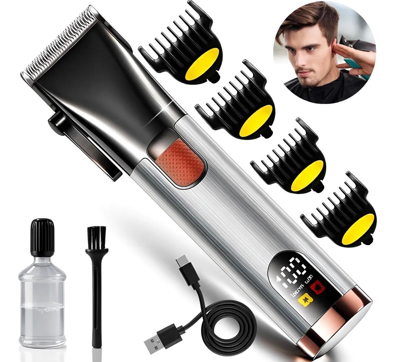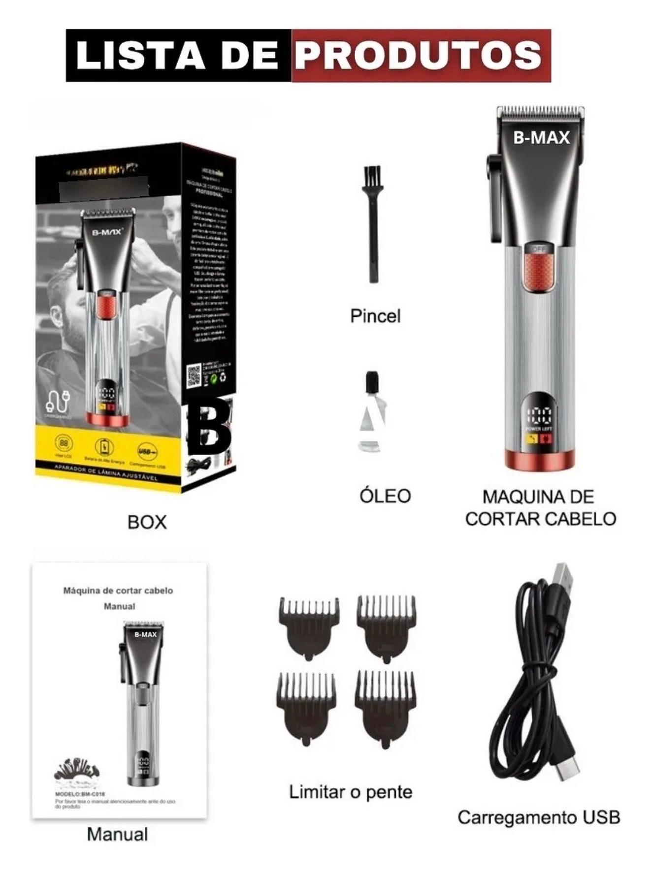 Máquina De Cortar Cabelo Cortador Barbeador Aparador Profissional Acabamento Barba 8 Peças Elétrico