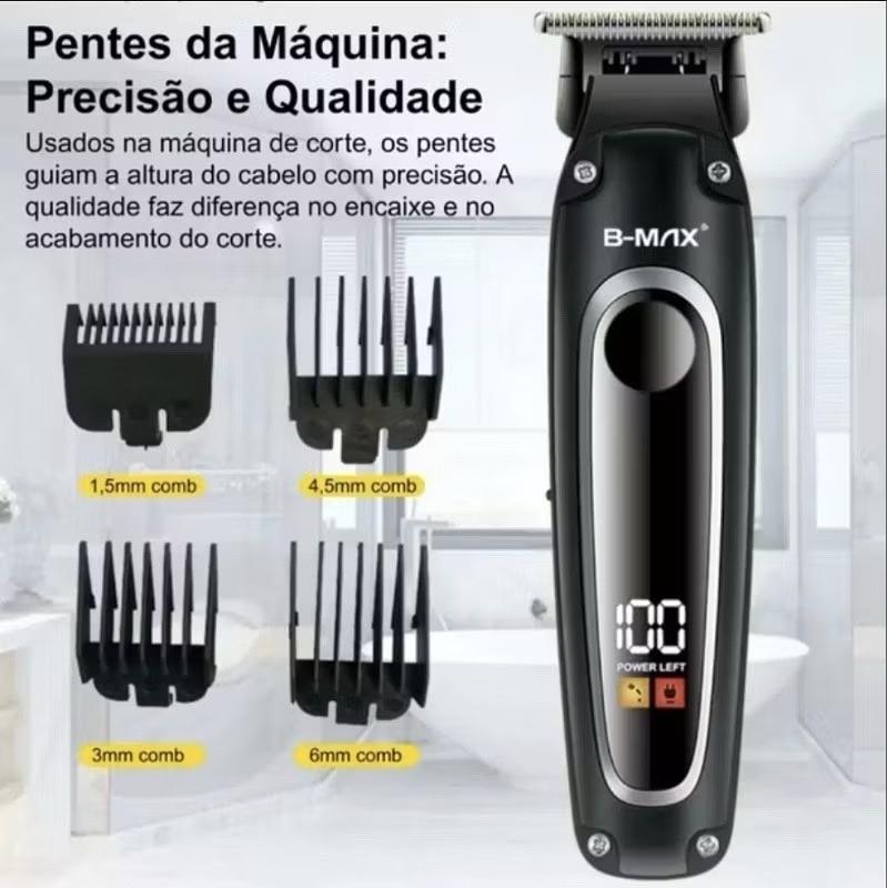 Máquina De Cortar Cabelo Cortador Barbeador Aparador Profissional Acabamento Barba 8 Peças Elétrico