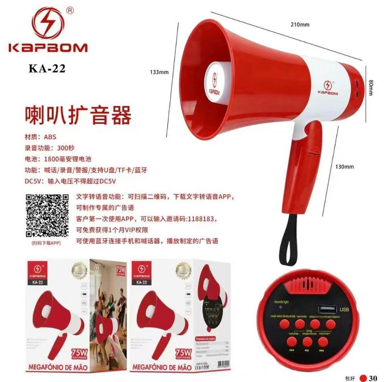 Megafone Portátil Recarregável Musica E Gravador 75w