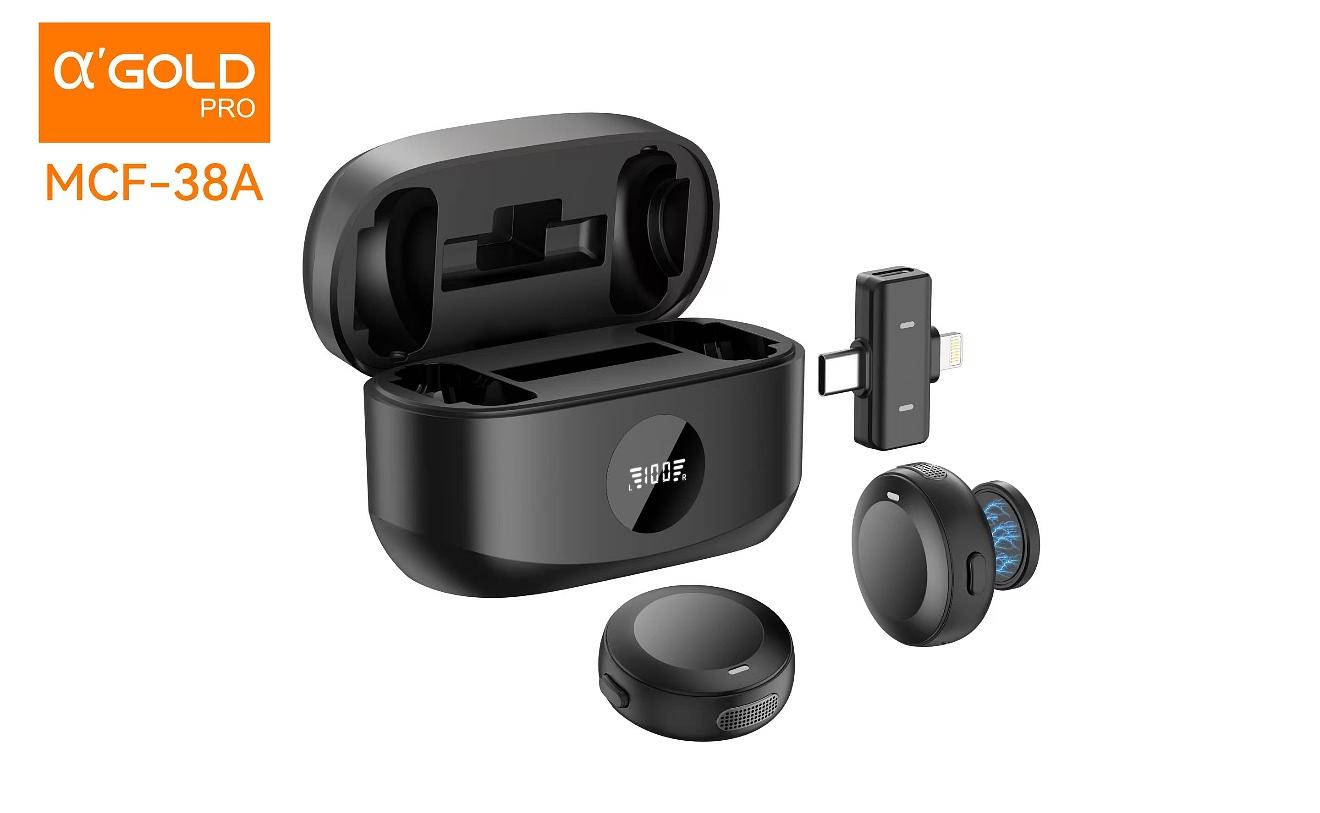 Microfone de Lapela Sem Fio 2 in 1 Type C e Lightning REDUCÃO DE RUÍDO DE IA Microfone duplo MCF-38A