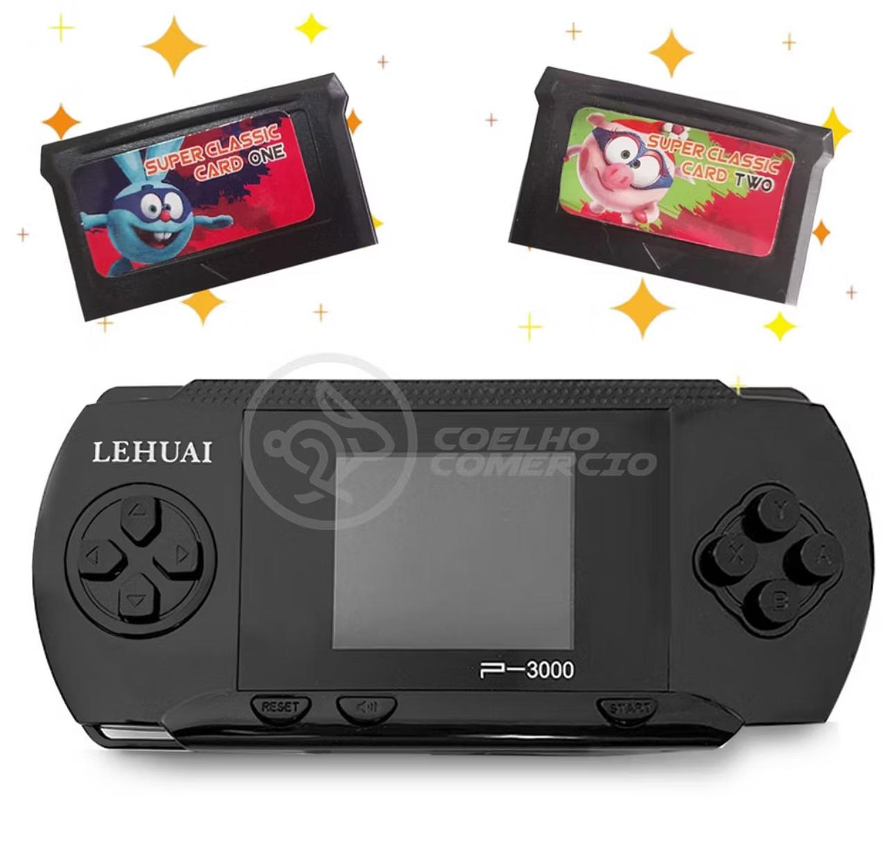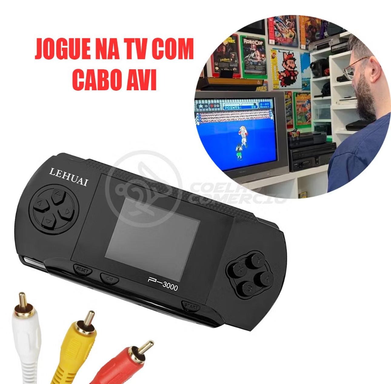 Mini Console Portátil Retrô P-3000 64 Bits 8GB 900 mil Jogos + 2 Cartuchos com Jogos + 1 Cabo AVI