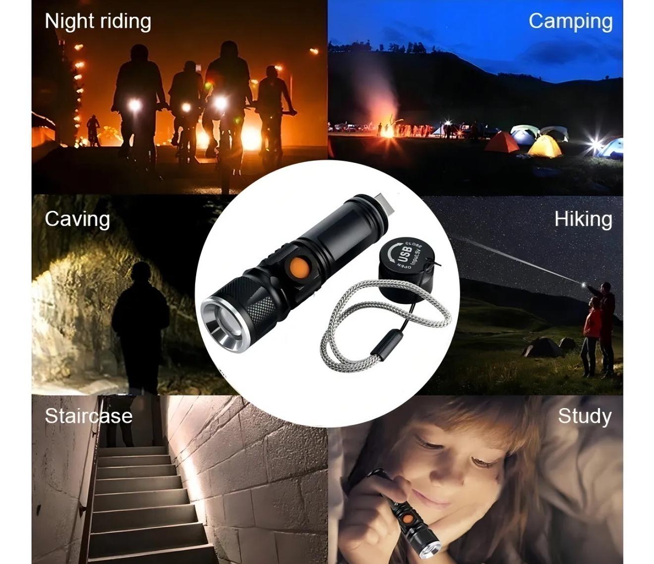 Mini Lanterna Tática Com Zoom Led Profissional Usb 515