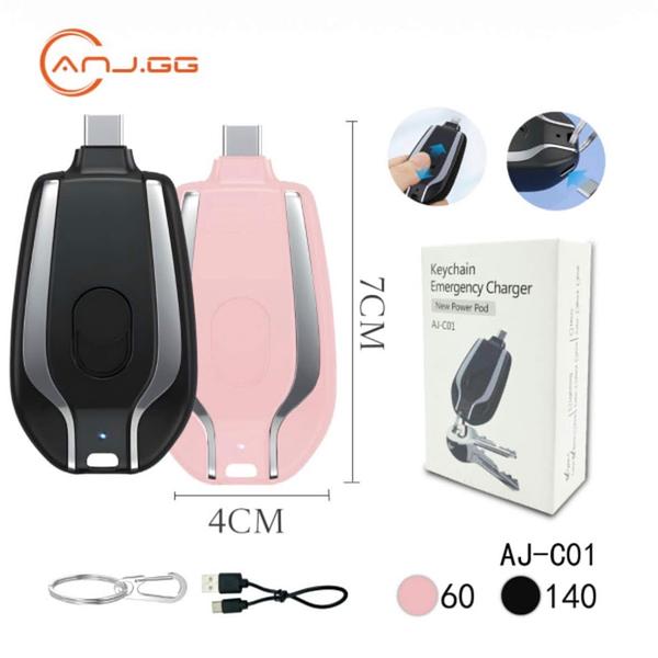 Mini Power Bank 1500mAh Tipo-C | Carregador Portátil Com Chaveiro