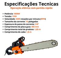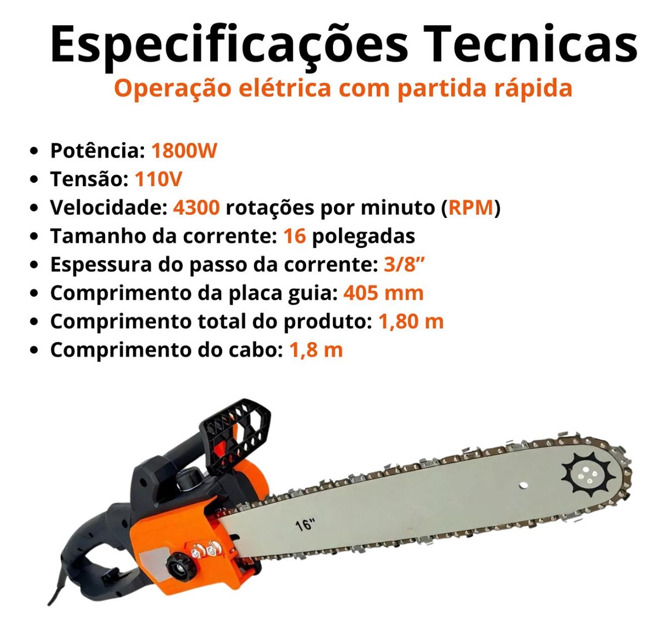 Motoserra Elétrica Profissional Sabre 16 Polegadas—110v
