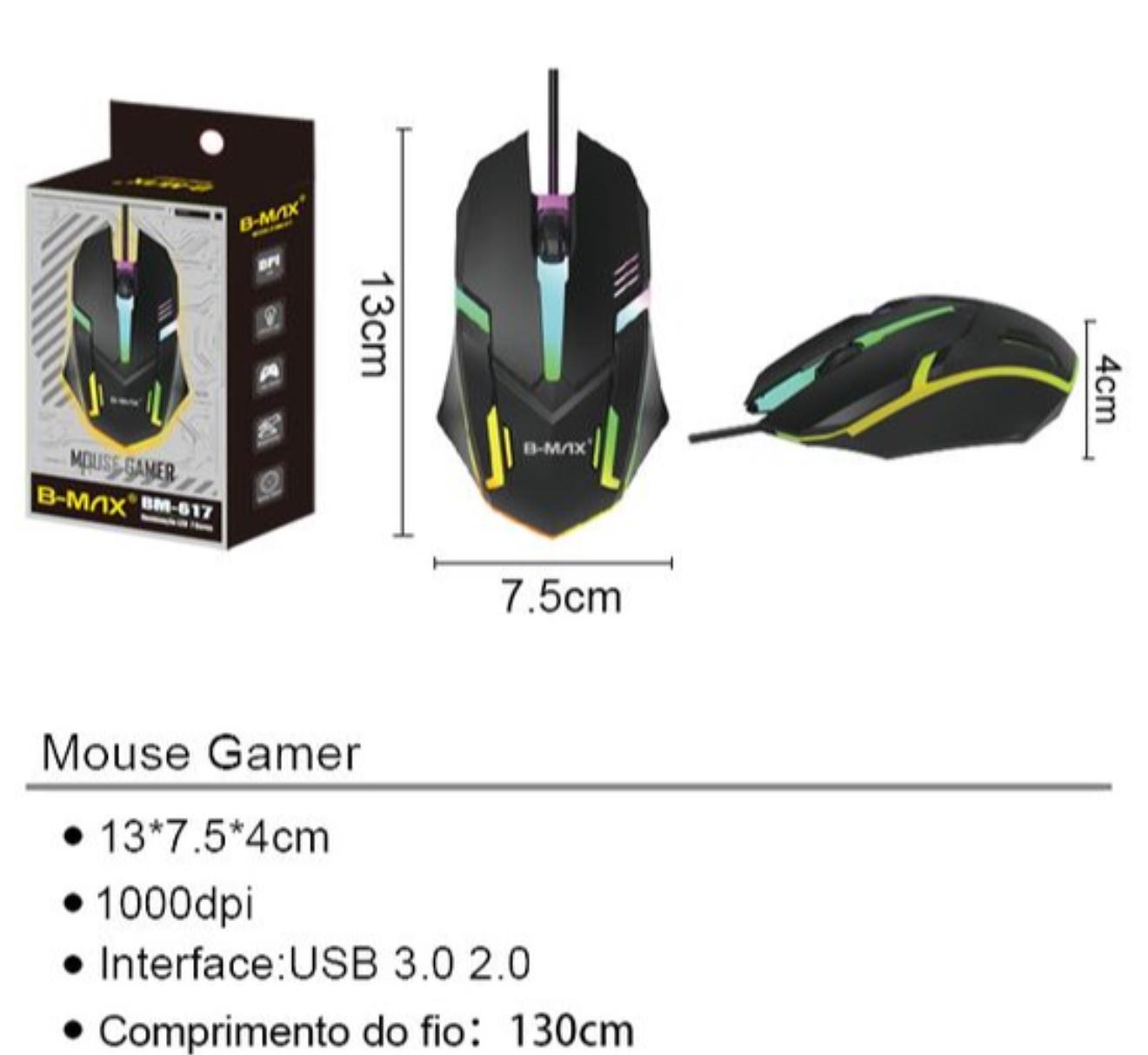Mouse Gamer 2400dpi Óptico Usb Led Rgb Precisão Profissional Jogos Pc