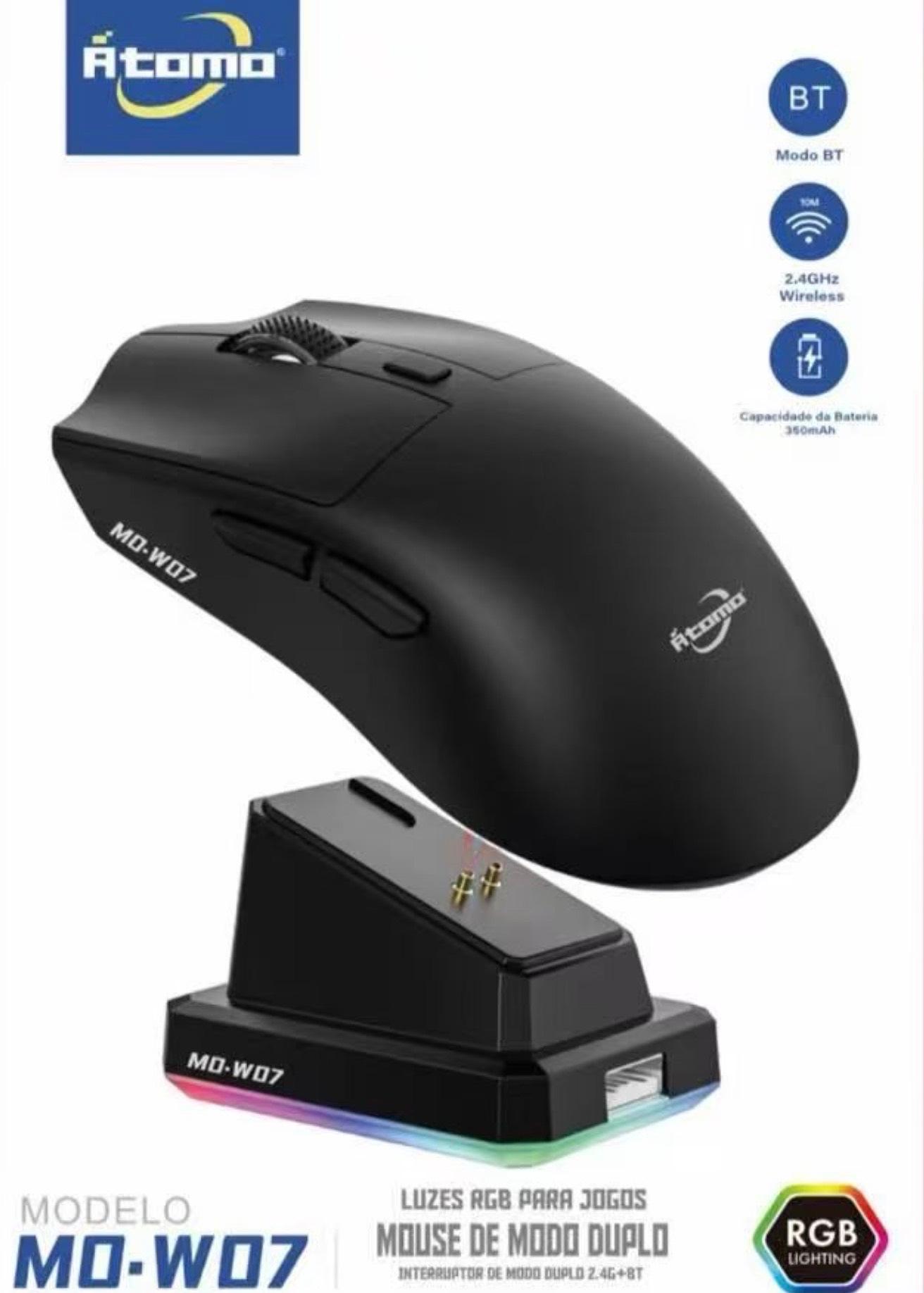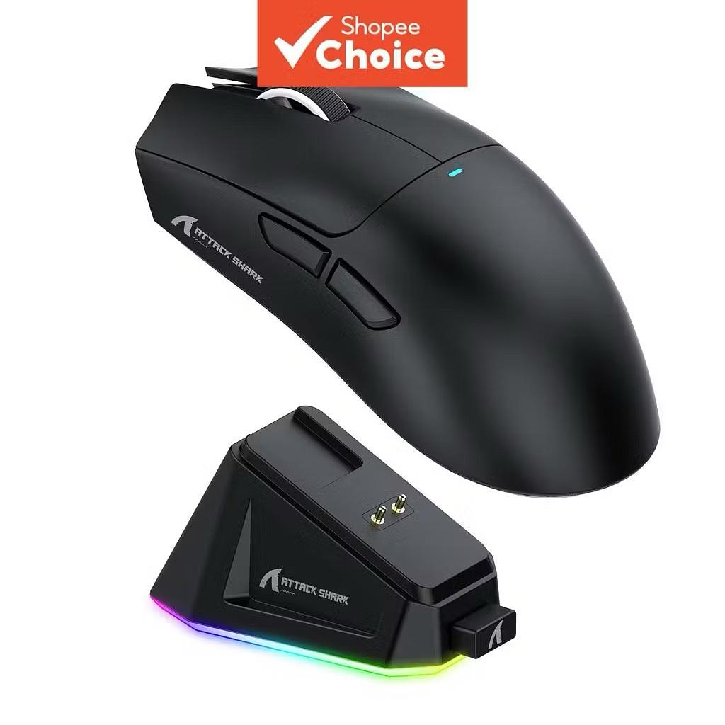 Mouse Gamer Sem Fio Original Attack Shark X11 com Adesivo, Bluetooth, USB, Preto e Branco, 3 em 1