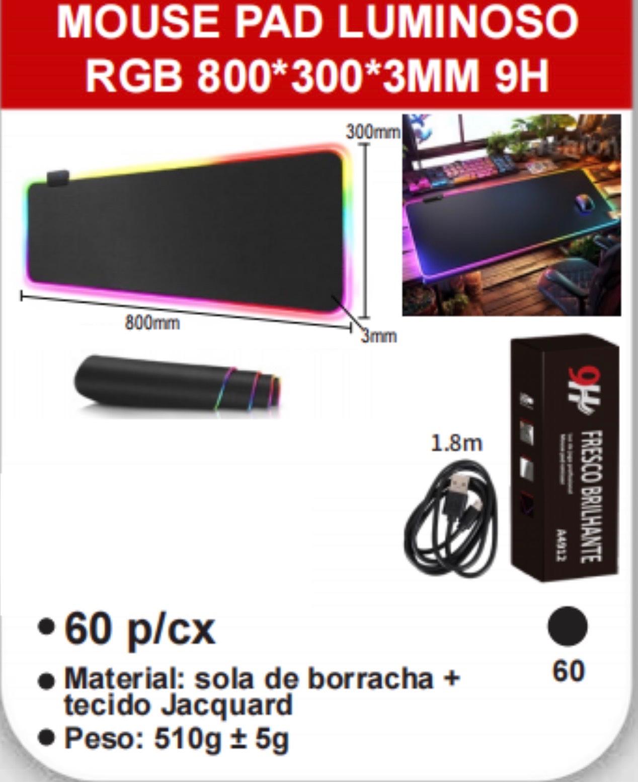 Mousepad Para Jogo Gamer Extra Grande 80 x 30 cm com LED RGB Speed Edition Preto Liso Sem Estampa