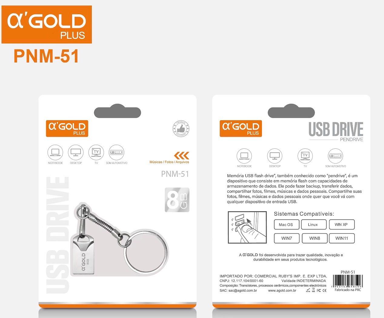 NOVA Mini Pendrive original Chaveiro Metal Usb 8G—AGOLD