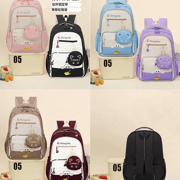 Nova Mochila Color-Block para Estudantes do Ensino Fundamental e Médio, Grande Capacidade, Leve, Mochila Fofa para Menin