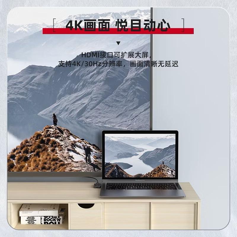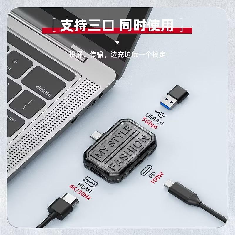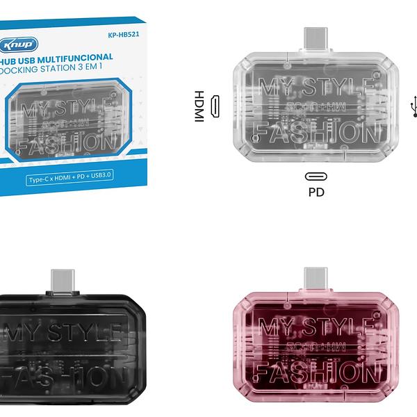 Novo produto transparente 3 em 1 multifuncional tipo C Docking Station porta USB-C para HDMI + USB3.0 + PD100W conversor