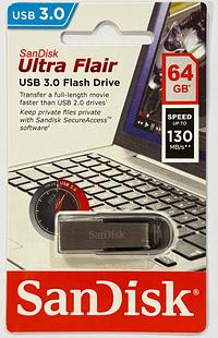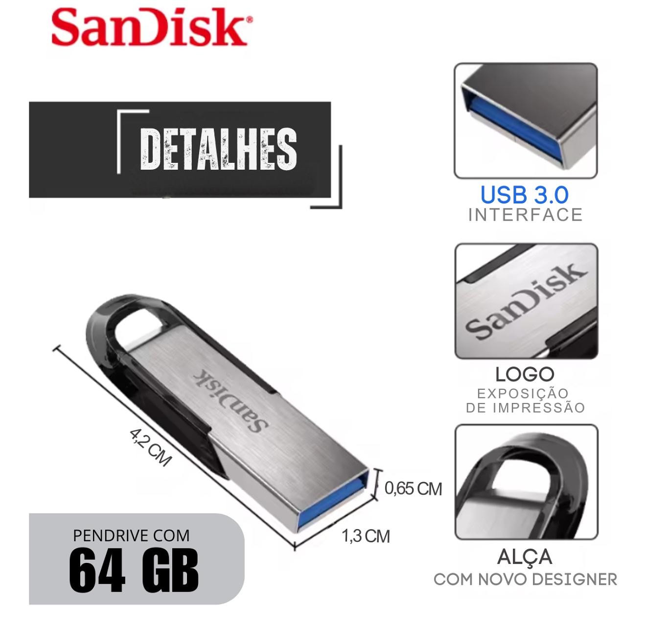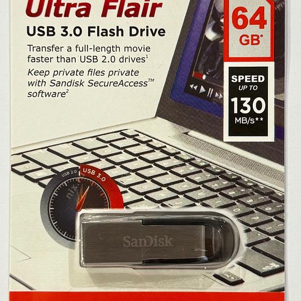 Pendrive SanDisk Ultra Flair 64GB 3.0 prateado e preto