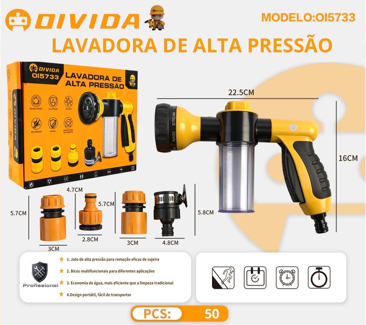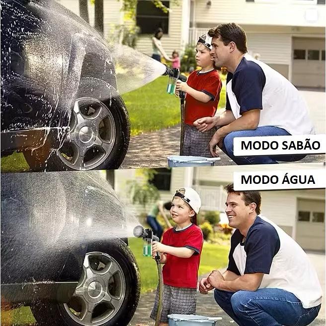 Pistola Esguicho de Mangueira com Reservatório de Sabão Multijato Jatos Lavar Carro Moto Pets Cães Dispenser
