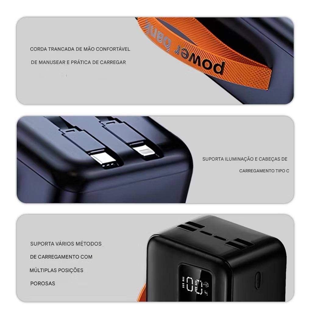 Power Bank 50000mAh com 6 Saídas 2 Cabos Display Digital e Super Carregamento Rápido 22.5W Preto