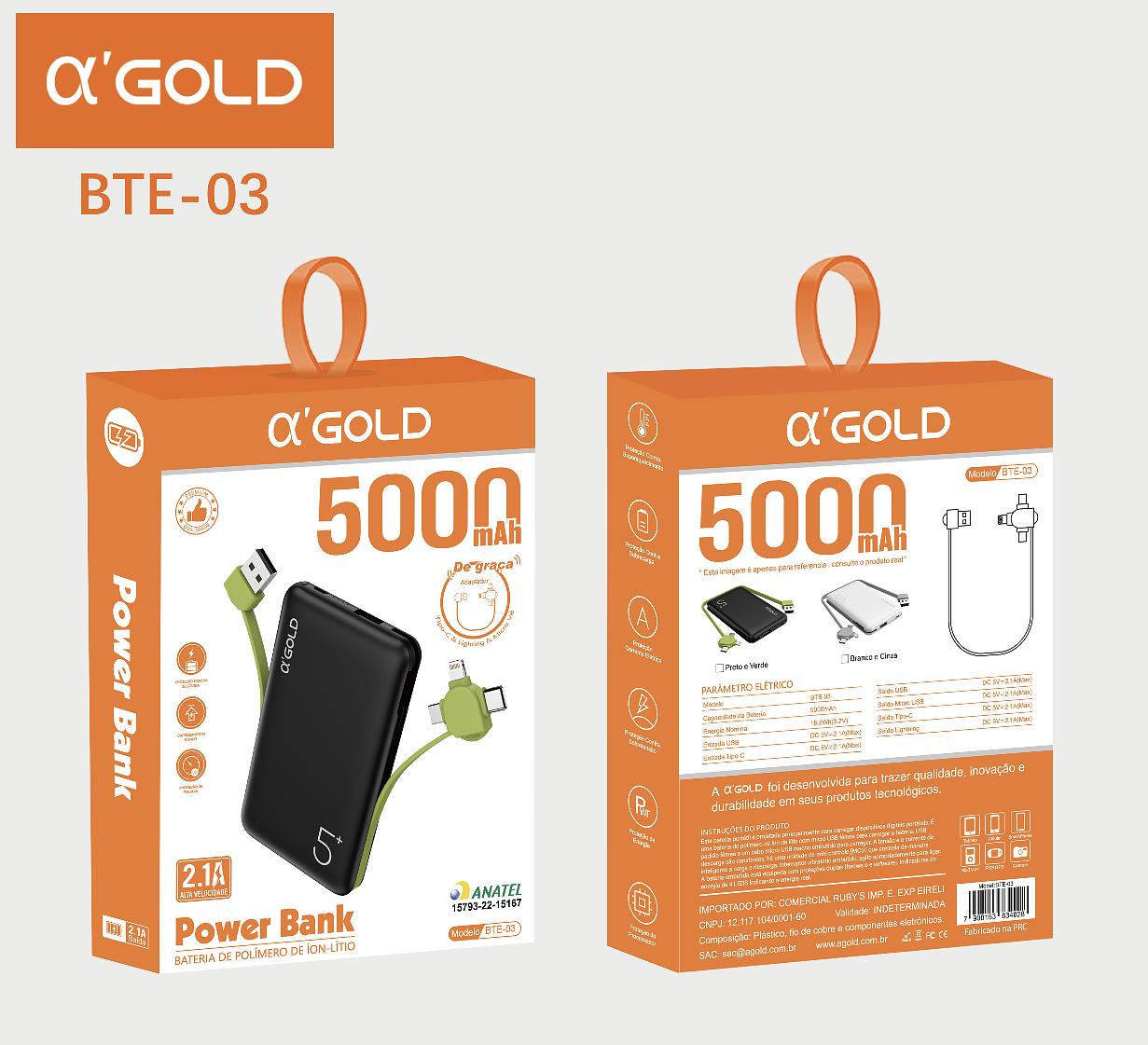 Power Bank HMASTON Chnpineng 5000Mah com cabo v8,type-c,iphone