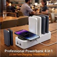 Power Bank Profissional 4 em 1 10000mAh x4 | Base com Indução 22.5W Ideal para Restaurantes, Bares