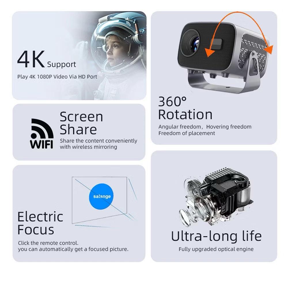 Projetor A10 Android TV 4K Dual Band WIFI 6.0 Bluetooth 5.0 Cinema Portátil Escritório Sala—AGOLD