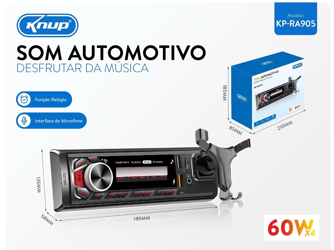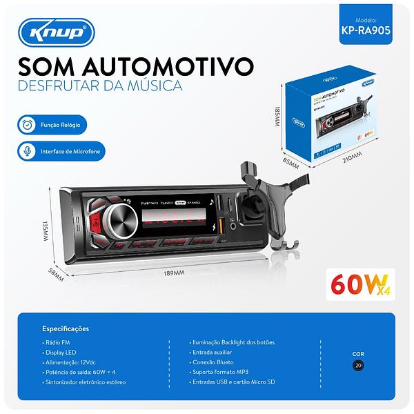 Rádio para Carro Bluetooth MP3 Display LED 60W x4 Com Microfone e Entrada Auxiliar Suporte para Celular