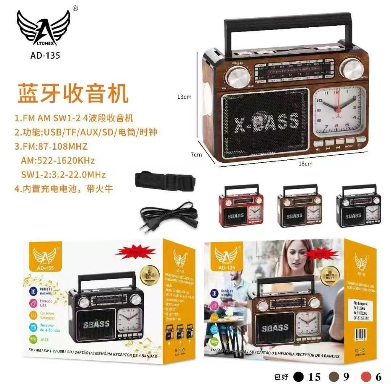 Radio portatil Relojio Altomex A-135BT Bluetooth Am Fm Sd Usb Ad-135