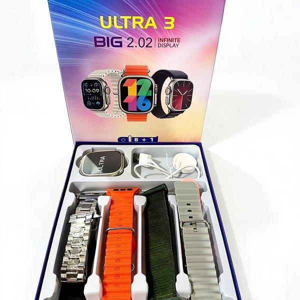 Relógio Inteligente Smartwatch 8+1 Ultra3 BIG2.02 Tem 8pulseiras