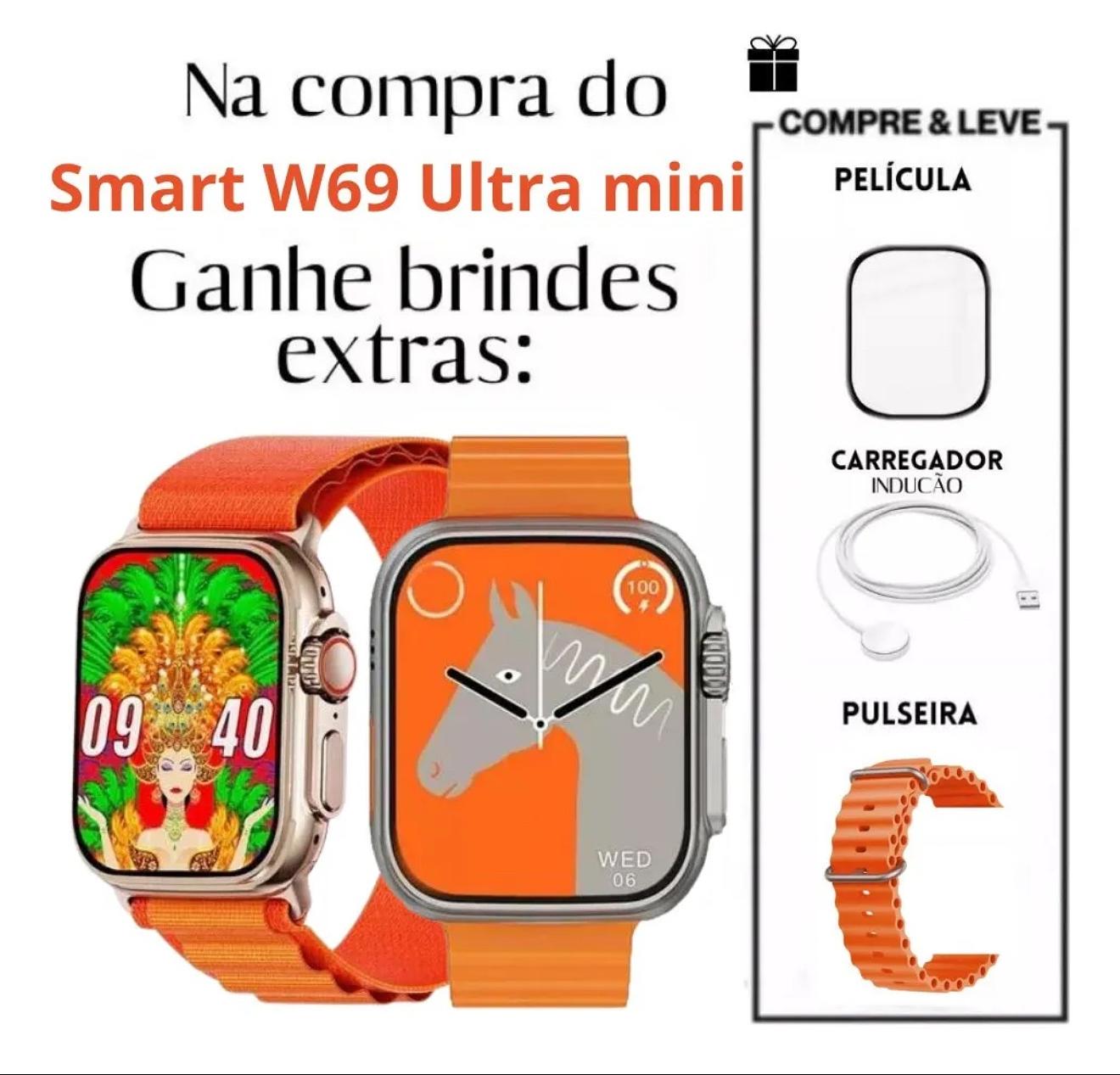 Relógio Smartwatch W69 Ultra Mini 45mm Seris 9 Nfc Gps Track