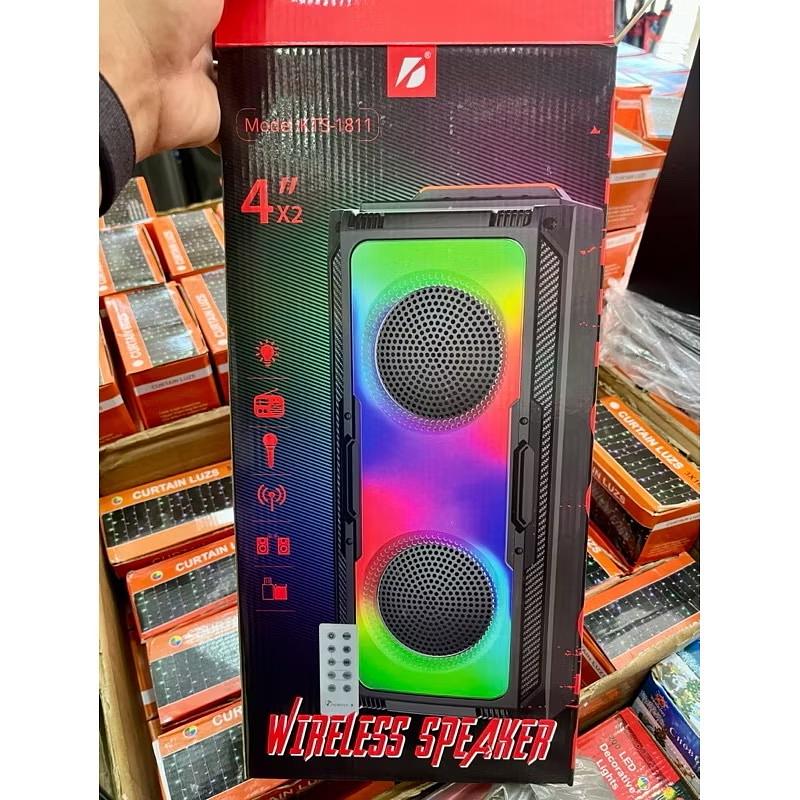 Super Caixa de Som kts 1811 Potente com Bluetooth FM USB Pen drive pega Microfone e leds e Controle