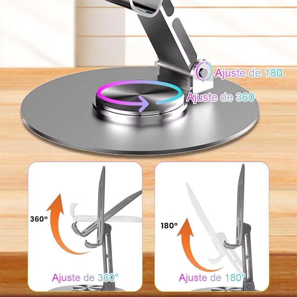 Suporte Giratório 360° Alumínio - Ajustável p/ Tablet e Celular - Estável em Qualquer Superfície
