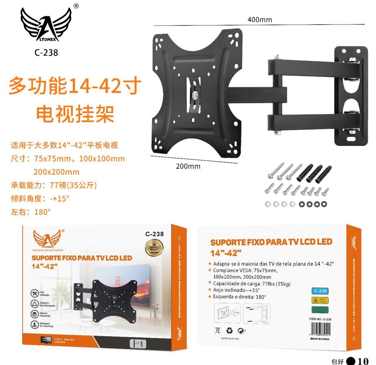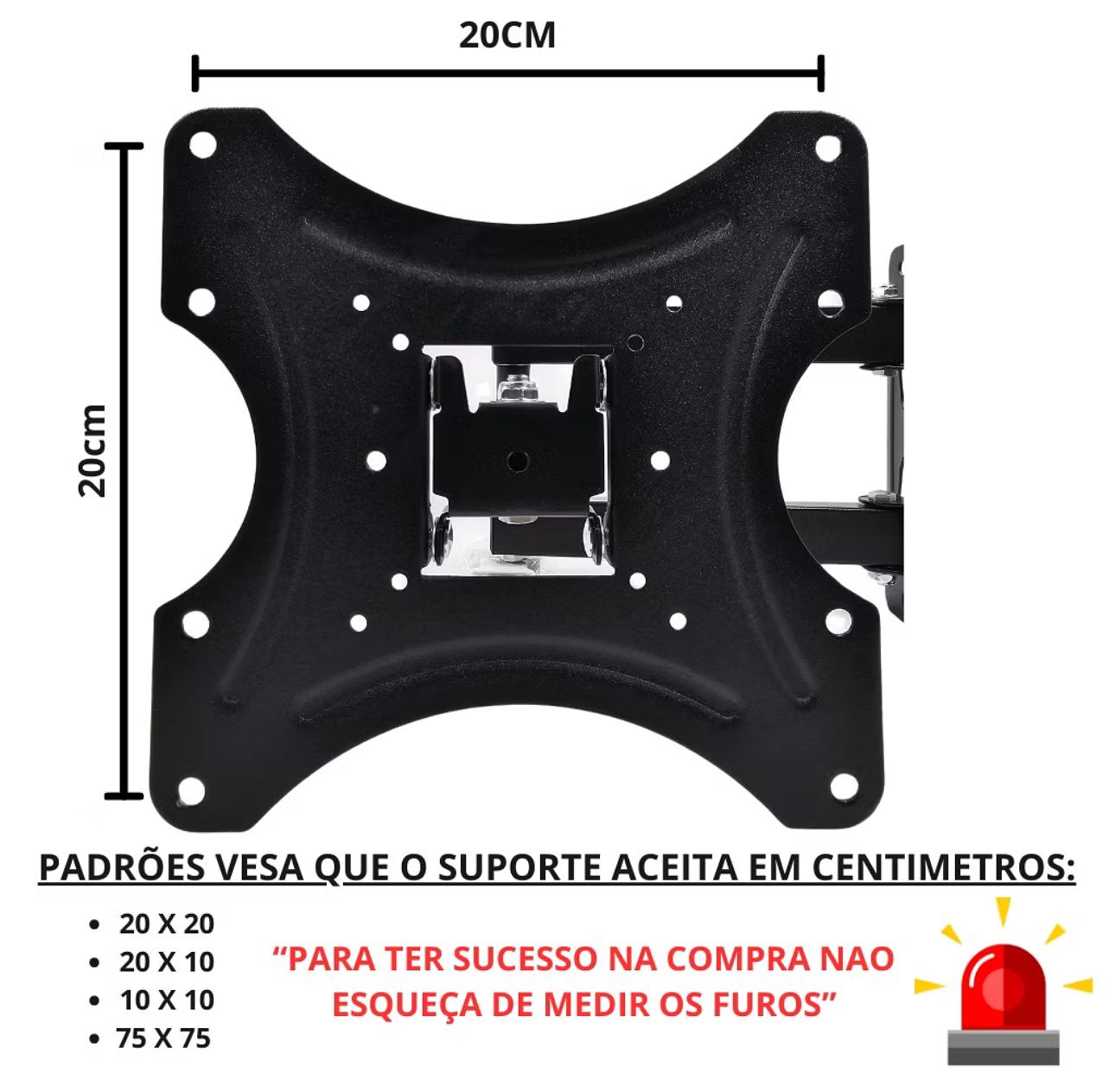 Suporte Bi Articulado Universal Para Tv De 17 A 42 Polegadas Cor Preto Marca OBERON