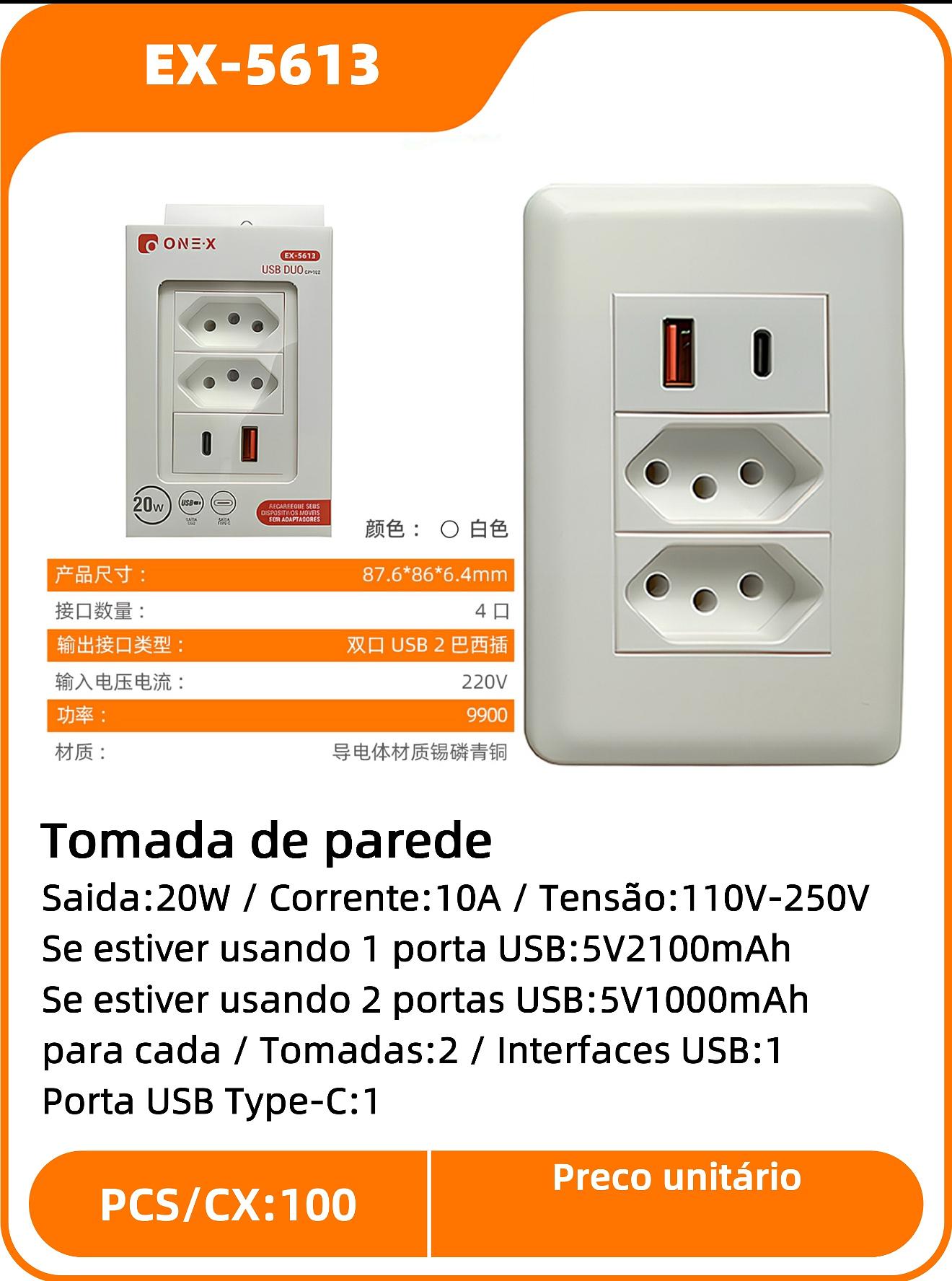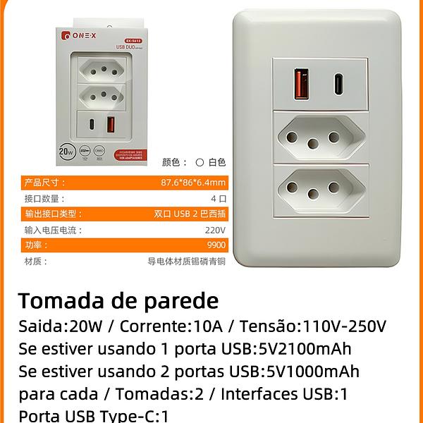 Tomada Parede Entradas Usb 4 em 1 Carregador Universal Dispositivo 2400mah