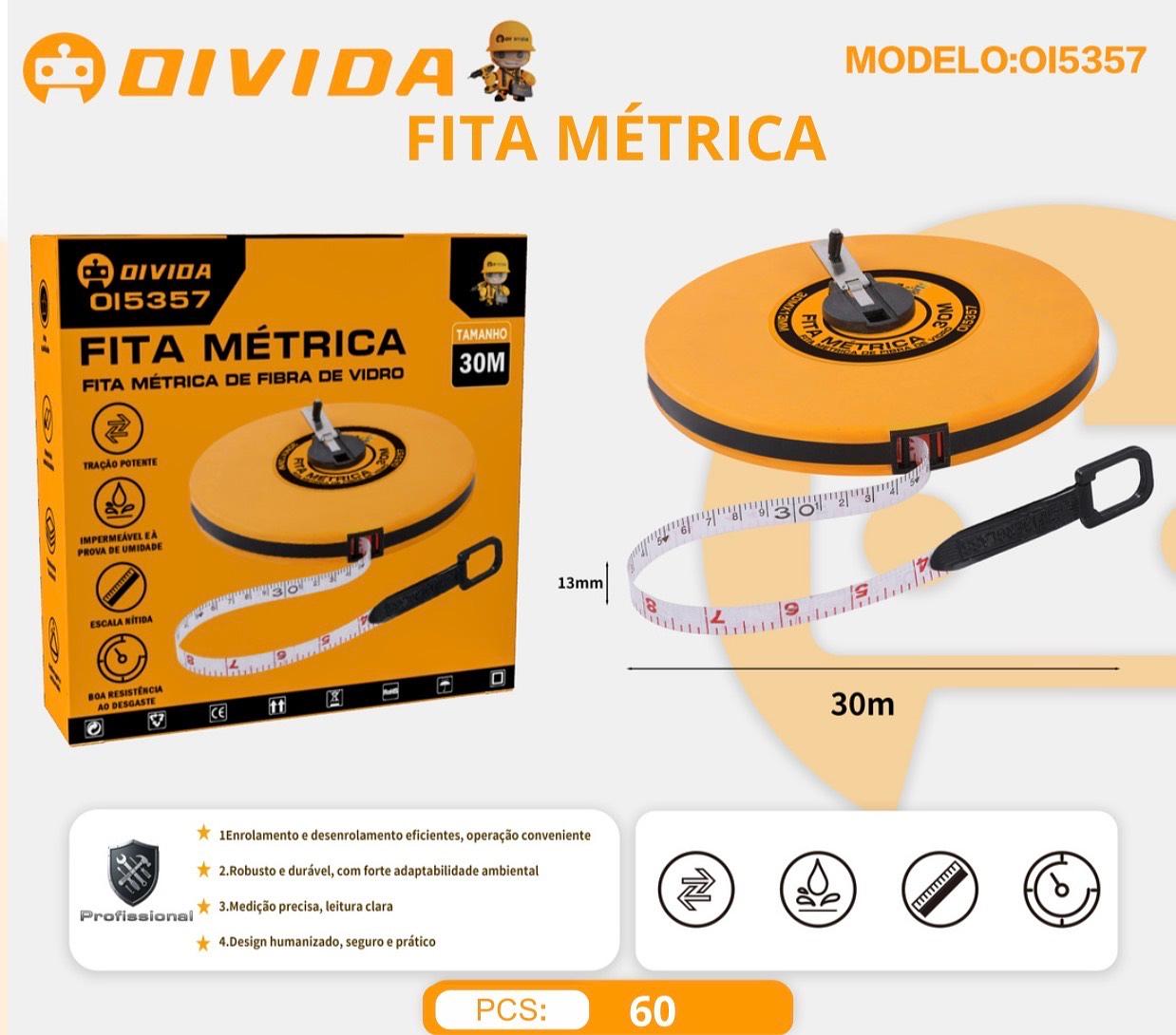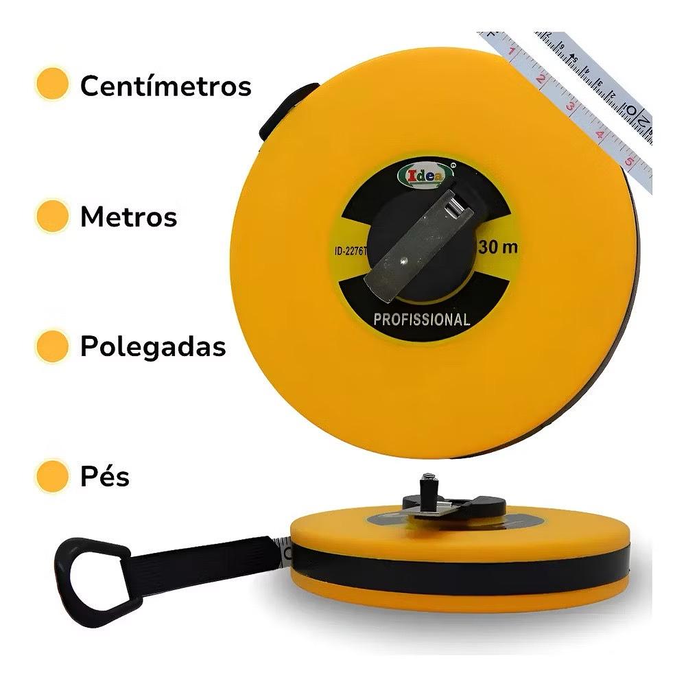TRENA FITA MÉTRICA 30 METROS FIBRA DE VIDRO PROFISSIONAL PARA MEDIÇÃO