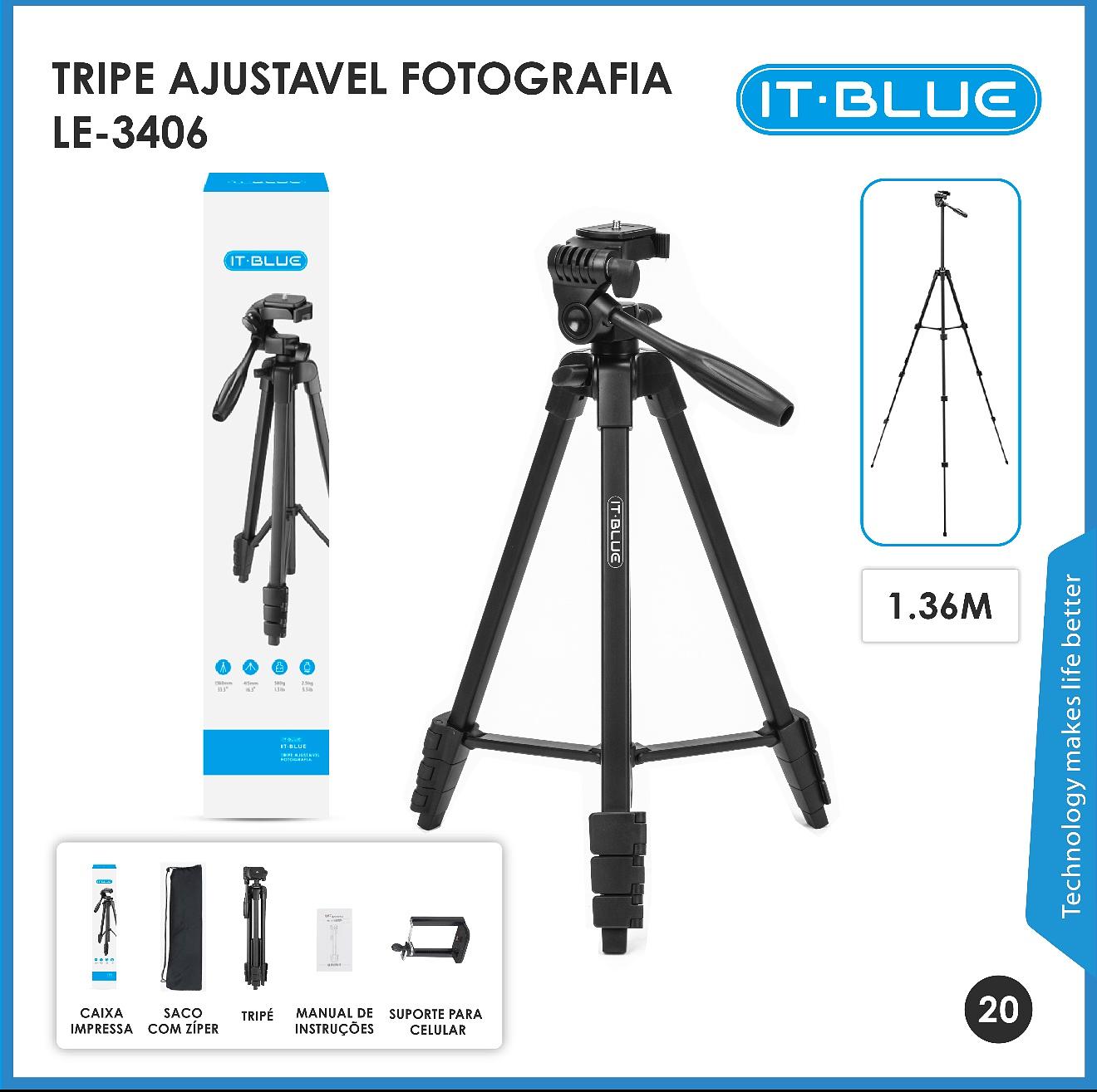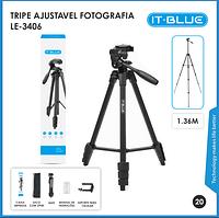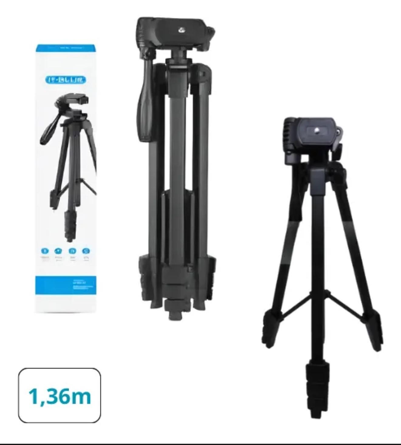 Tripé Ajustável 1,36m Para Celular E Câmera Estável Leve