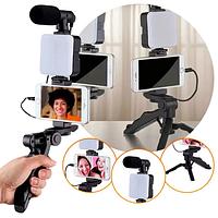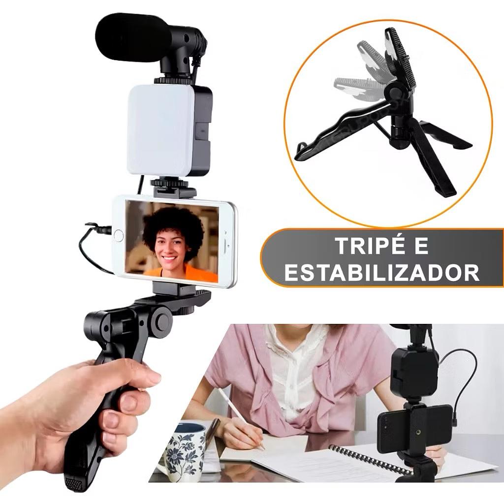 Tripé Estabilizador de Mão kit 5 em 1 gimbal Microfone Celular Gravação De Vídeo