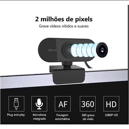 Webcam Câmera Full Hd Computador 1080p Usb Visão 360º Videoconferência Vídeos PC Notebook