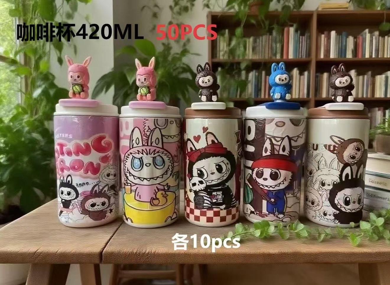 Xícara De Café LABUBU , Cordão Com Caneca A Vácuo De Palha , Garrafa De Água Isolada De Aço Inoxidável À Prova De